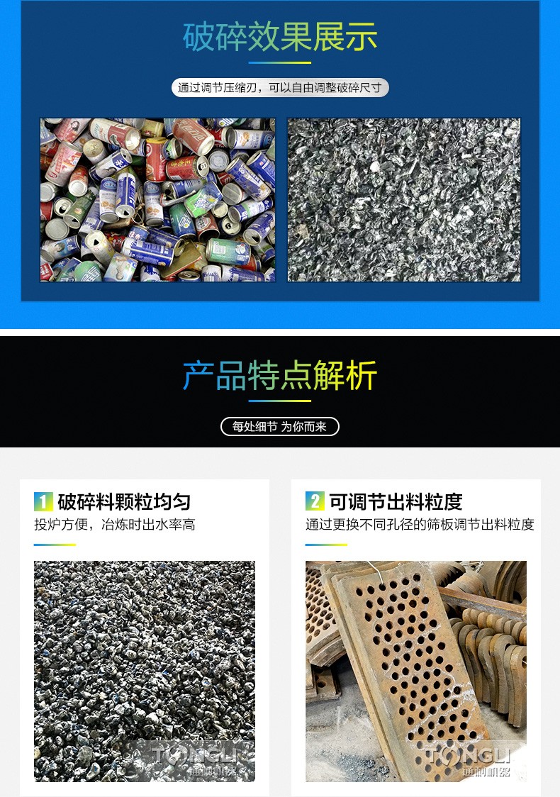 • 相同的破碎機,鋼材的不一樣,直接決定了價格的低,也決定了金屬破碎機質量的壞,通常的鋼材,看上去厚重,外表光滑,摸上去雜質少。