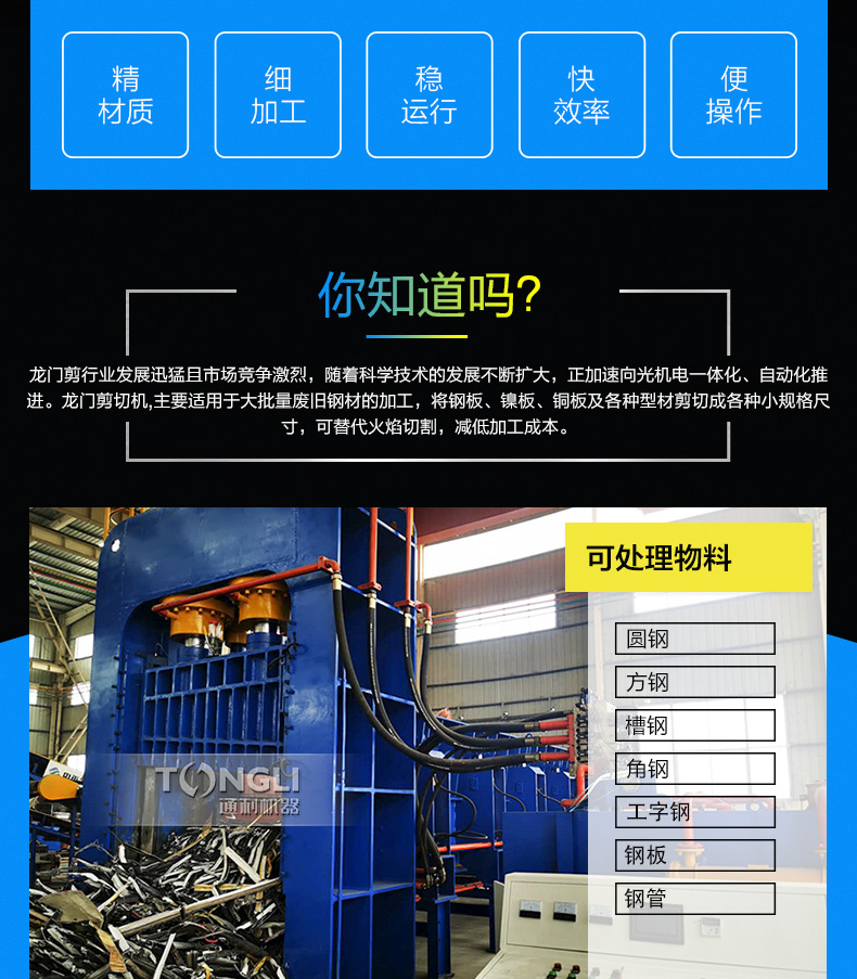 A:河南通利生產出來的龍門式液壓剪切機是一種新型,,,的新式設備。
